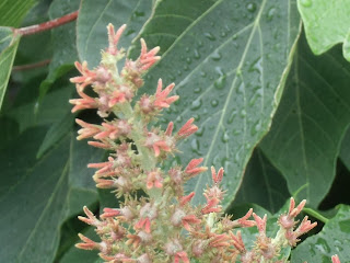 我が国では本州の岩手・秋田県以南の山野に普通に自生しているアカメガシワ【赤芽柏】(トウダイグサ科)の花です。繁殖力が旺盛な落葉高木で、市街地のちょっとした空き地などにもよく生えています。